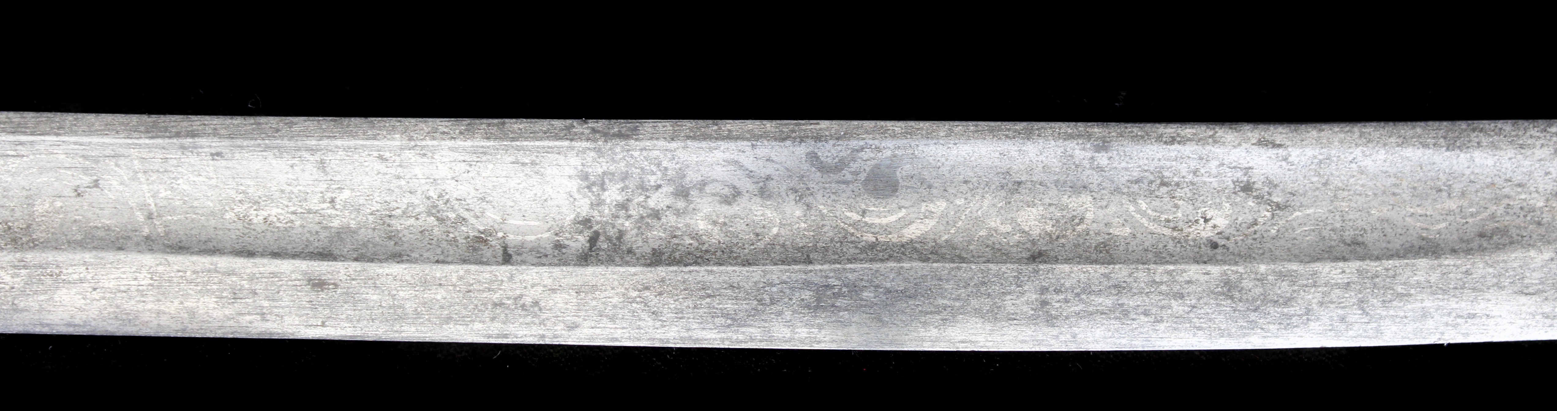 the complete length of the fuller, though the etching is light.